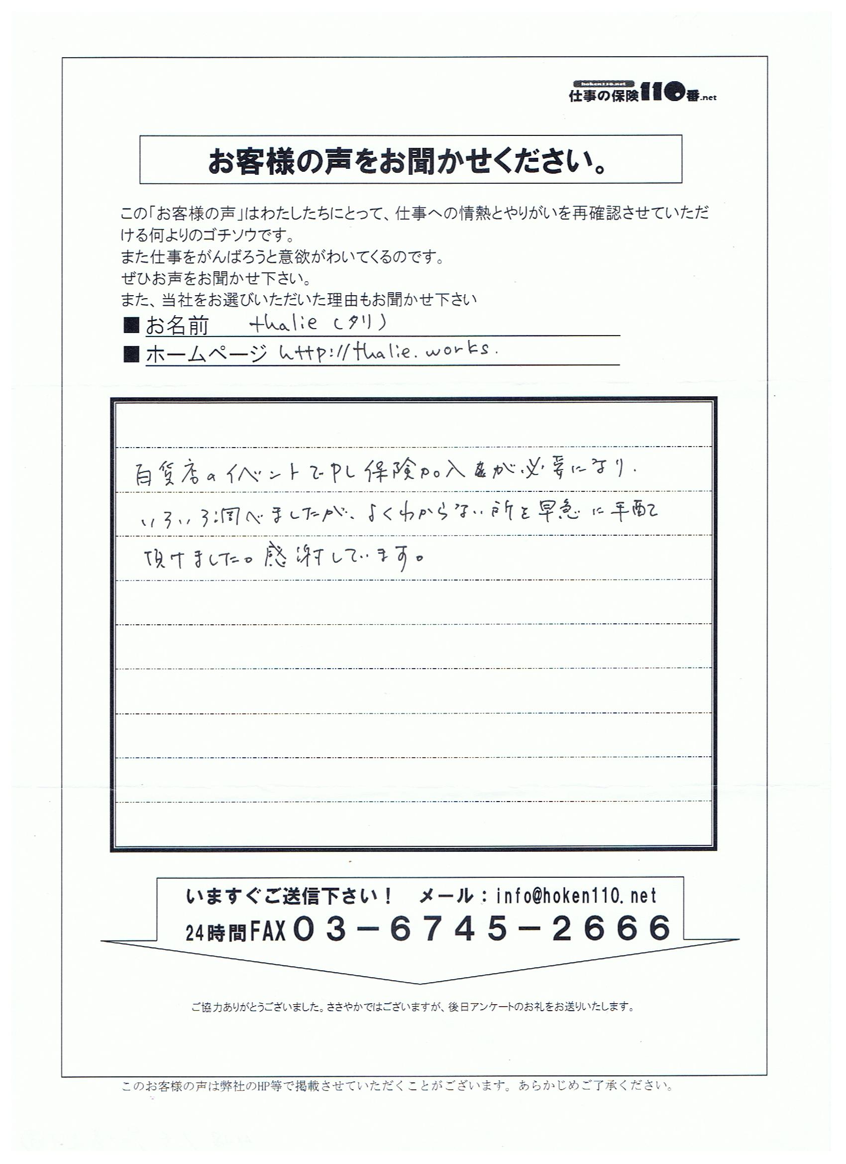 百貨店のイベントでPL保険加入が必要になり、