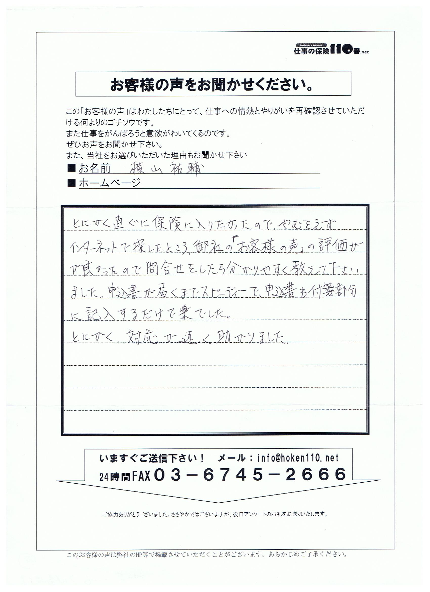 申込書が届くまでスピーディーで、申込書も付箋部分に記入するだけで