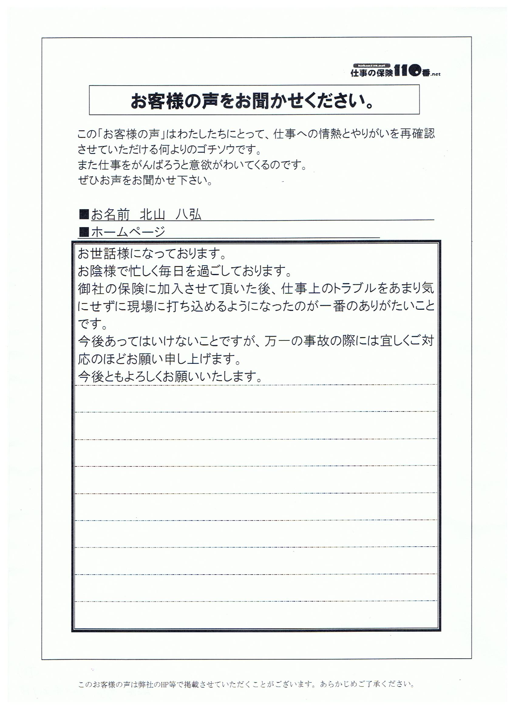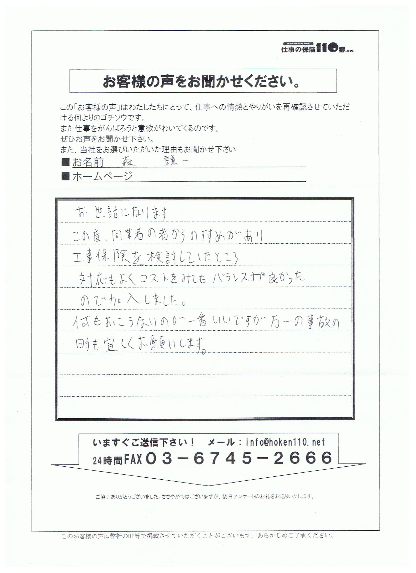 この度、同業者の者からのすすめがあり、工事保険を検討していたところ、