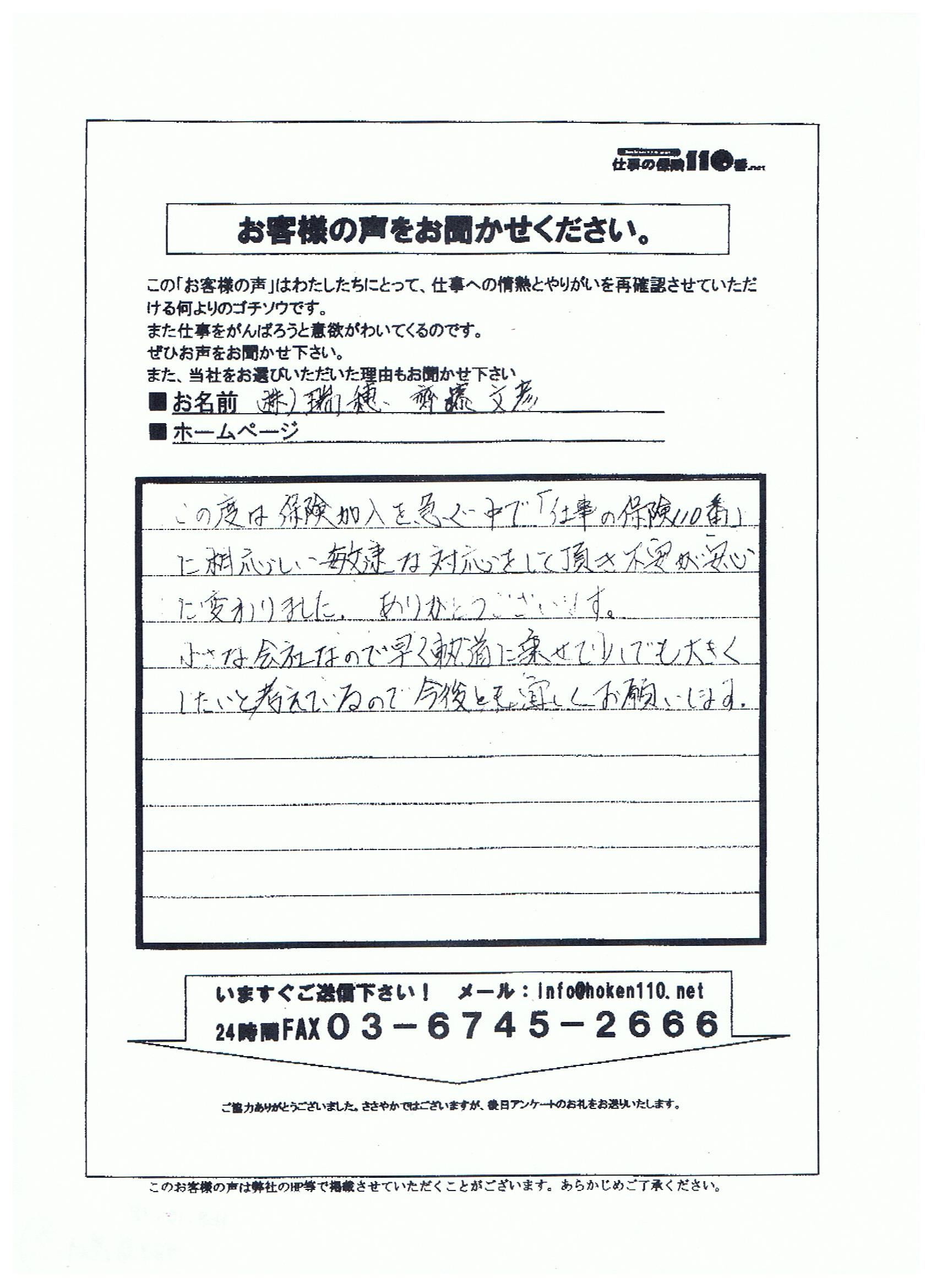 この度は保険加入を急ぐ中で、「仕事の保険110番」